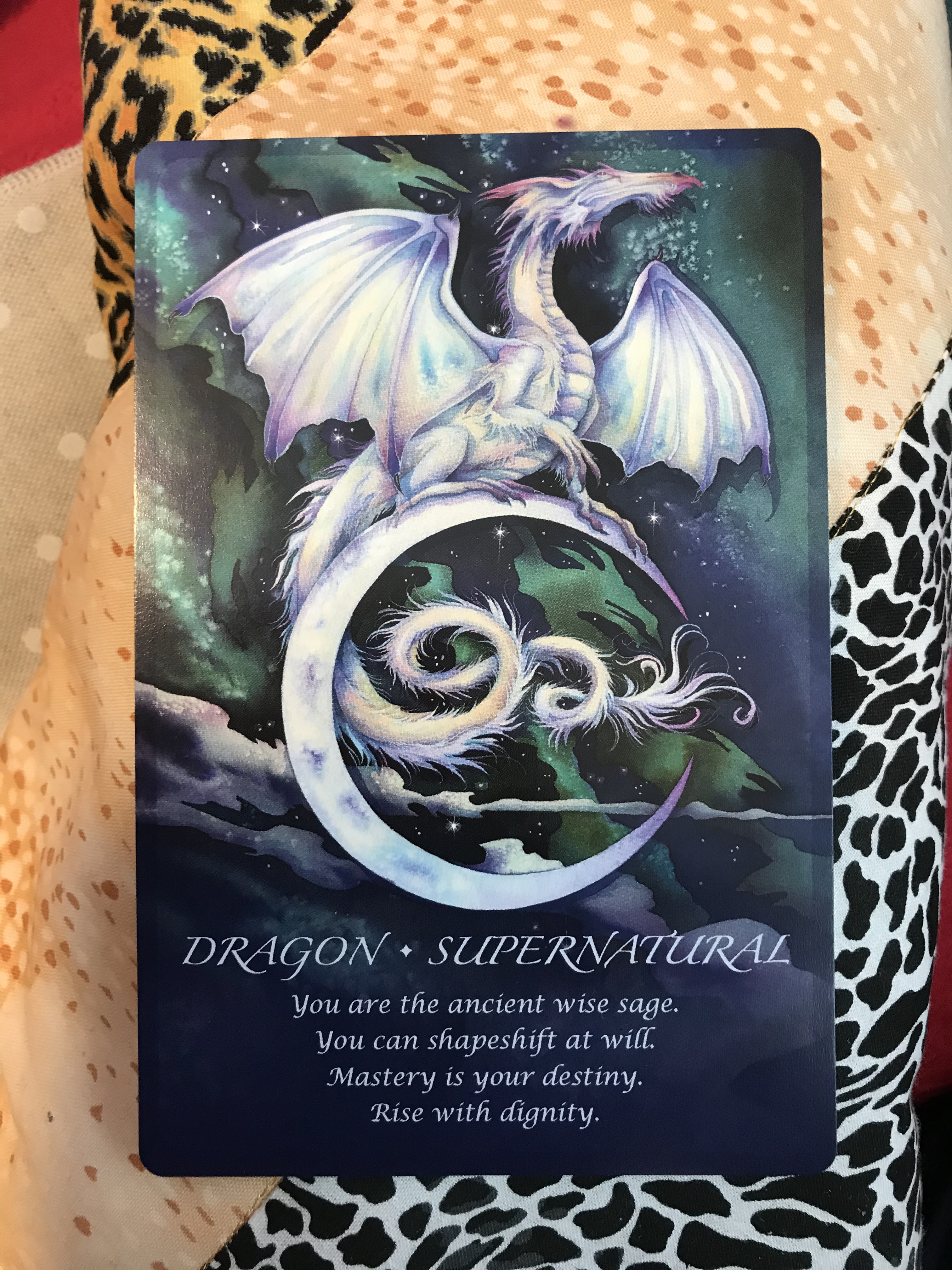 Today when I drew the card for the Self, the card was drawn from The Spirit of the Animals Oracle deck by Jody Bergsma. The card is Dragon-SuperNatural. We all are Dragon at Heart, we can be fierce but loving and caring, protecting. I loved what Jody Bergsma said about the Dragon energy. “If Dragon is your totem, you are marked for power. Use it well. A purposeful life is your great treasure. Your wings are your breath, your body the earth, the water your blood, and the fire is your eternal spirit. Let your life rise from the ordinary to become the extraordinary.”